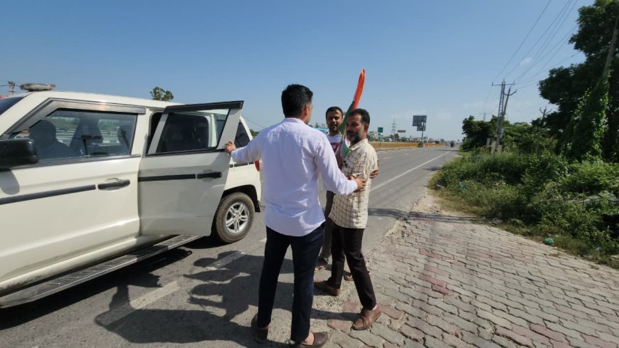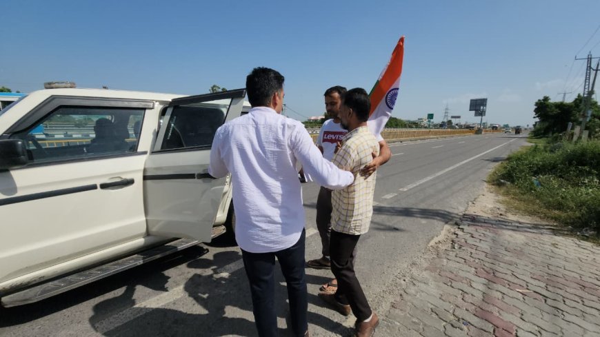 एक हाथ में तिरंगा झंडा और दूसरे हाथ में जनता के सवालों को लिए अकेले मुख्यमंत्री से मिलने निकले आप नेता देवेन्द्र गौतम को NH-44 से किया डिटेन!