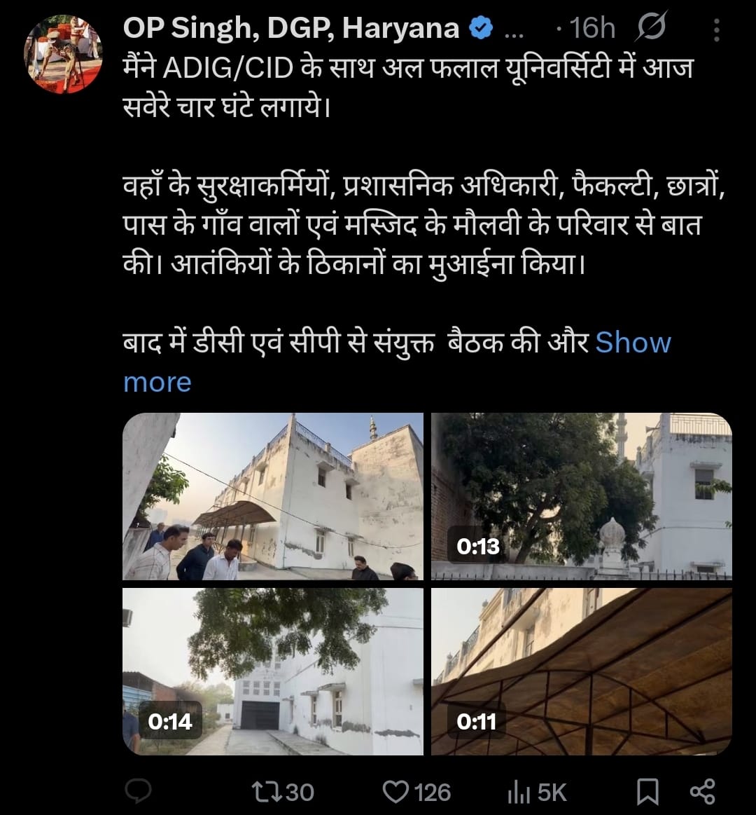 - फरीदाबाद यूनिवर्सिटी में विस्फोटक मिलने को DGP ने सुरक्षा चूक माना