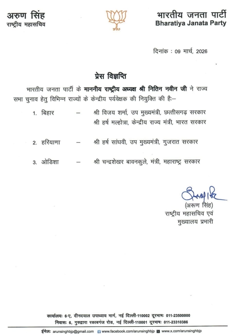 ■ हरियाणा राज्यसभा चुनाव के बीच भाजपा ने गुजरात के डिप्टी सीएम हर्ष सांघवी को ऑब्जर्वर नियुक्त किया