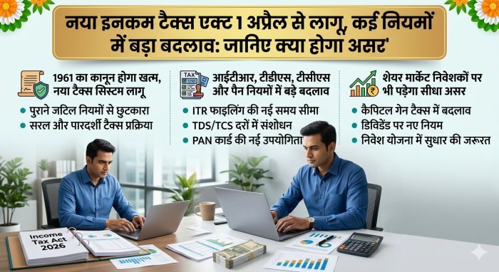 1 अप्रैल 2026 से नया इनकम टैक्स एक्ट लागू होगा, जिसमें आईटीआर, टीडीएस, टीसीएस और पैन से जुड़े कई बड़े बदलाव किए गए हैं।